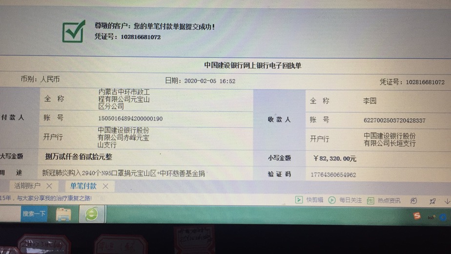 新型冠狀病毒肺炎疫情阻擊戰(zhàn)打響以來,為支援一線抗擊疫情,彰顯企業(yè)擔(dān)當(dāng),內(nèi)蒙古中環(huán)市政工程有限公司于2月2日向武漢市慈善總會捐助善款100000元,緊急馳援武漢;同時向元寶山區(qū)防疫指揮部捐贈82320元緊急購買N95口罩2940個,用于新型冠狀病毒肺炎疫情防控,以實(shí)際行動踐行社會責(zé)任。