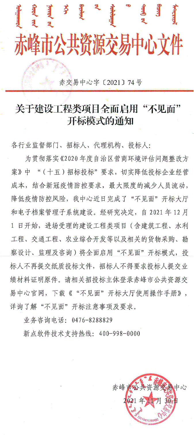 赤峰市建設(shè)工程類項(xiàng)目全面啟用“不見面”開標(biāo)模式